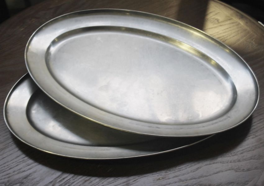 50 x Stainless Steel Oval Restaurant Serving Tray Platters - Dimensions (approx): 45 x 29cm - Recently Removed From a Popular Restaurant Environment - Ref: 1082(B) BL/WIQ - CL830 - Location: Altrincham WA14