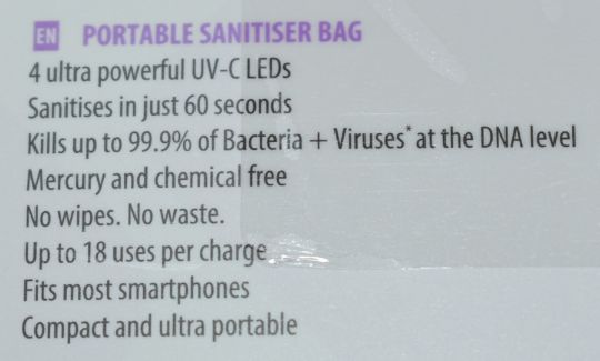 4 x Homedics UV Clean Portable Sanitiser Bags - Kills Upto 99.9% of Bacteria & Viruses in Just 60 Seconds - Brand New - Ideal For Phones, Keys, Tablewear etc - Rechargable - CL232 - Location: Altrincham WA14