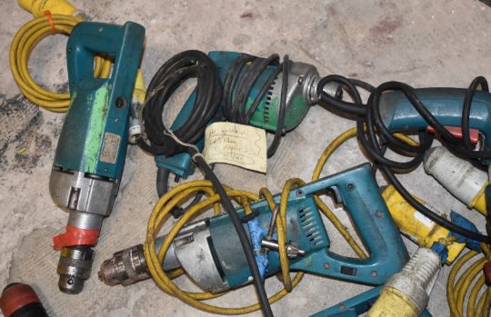 6 x Industrial 110v Power Tools Including Drills and Bench Saw - Ref: C568 SR - CL816 - Location: Altrincham WA14