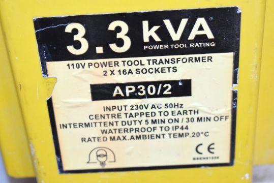 1 x Site Transformer For 110v Tools and Lighting - 3.3kva - 2 x 16A Sockets - 240v to 110v - Ref: C450 MR1 - CL816 - Location: Altrincham WA14