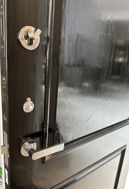 1 x SOLID OAK Fire Door In Black Gloss And Stainless Steel Hardware - Ref: KKH116 - CL848 - NO VAT ON THE HAMMER - Location: Altrincham WA14