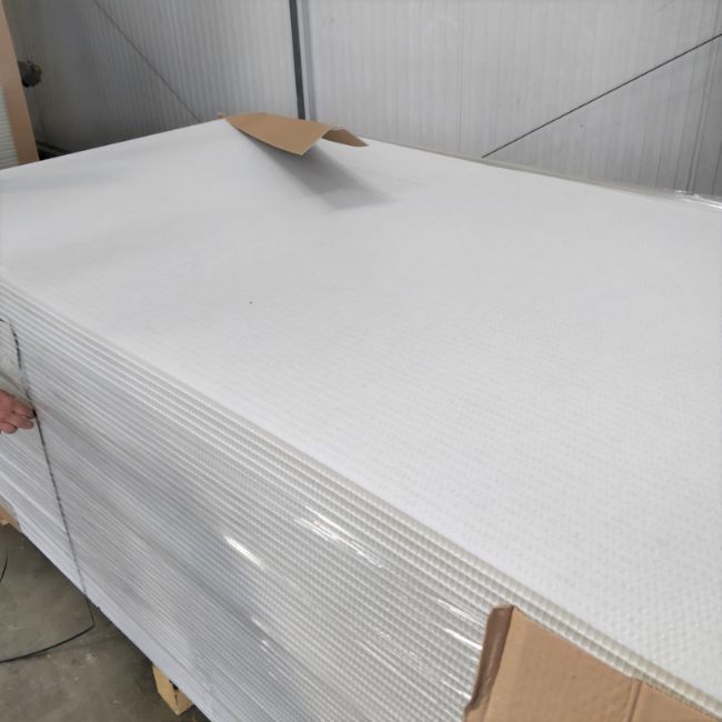 ThermHex sheets are finished with a polypropylene barrier film. This film prevents resins or adhesives from leaking into the open cells during processing and assures the material remains robust. At the same time, the quantity of resin / adhesive needed for processing is kept to a minimum. The second standard surface finish is a PET non-woven material, which enables easy bonding of various types of facing materials with all common adhesives, including polyurethane based glues.