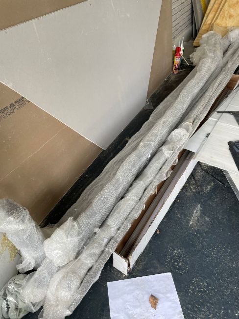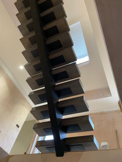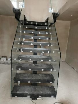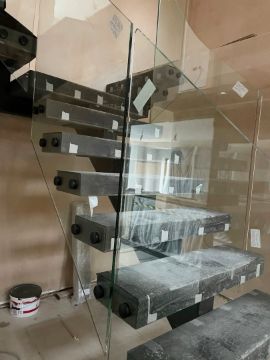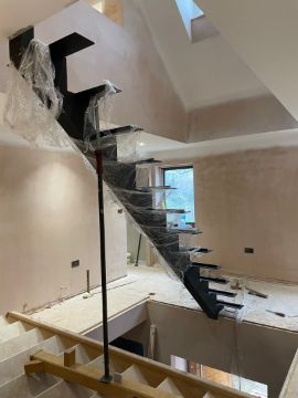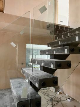 The First two images show the stairs at present, in their half completed state. All other components, including the Hand Rails, Aprons and Glass Panels have already wrapped, and placed in the Clients garage.
