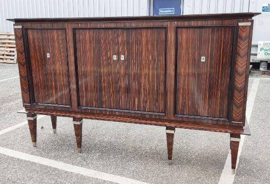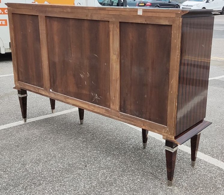 1 x MAURICE RINCK-Inspired Art Deco Four Door Sideboard With 6 Silver Embellished Feet & Chevron Detail - Ref: CNT481/GIT - CL845 - NO VAT ON THE HAMMER - Location: Altrincham WA14