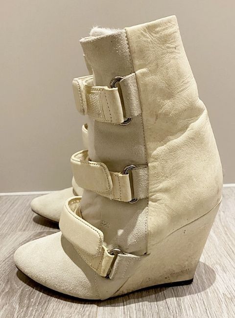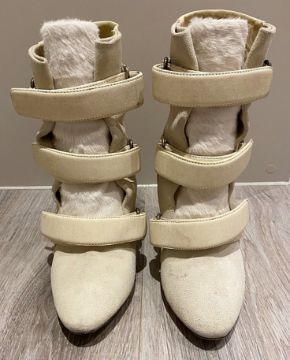 1 x Pair Of Genuine Isabel Marant Boots In Crème And Fur - Size: 37 - Preowned in Very Good Condition - Ref: LOT27 - NO VAT ON THE HAMMER - CL594 - Location: Altrincham WA14