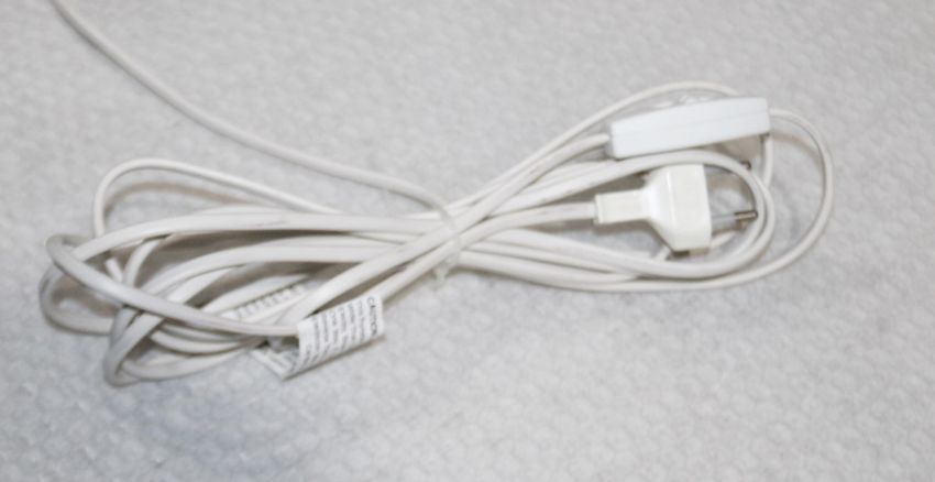Fitted with an in-line on/off switch with a 2-pin plug, and will requires an adapter for UK use.