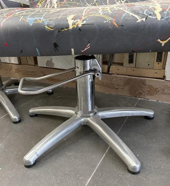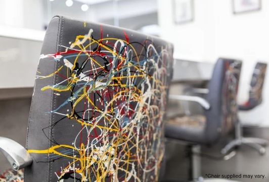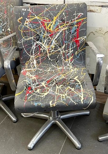 1 x REM Leather Stylist Chair Featuring Especially Commissioned Abstract Paintwork By A Renowned British Artist - A Unique Handpainted Piece, From An Award-winning Chelsea Hair Salon - Ref: 015 - CL828 - Location: Altrincham WA14