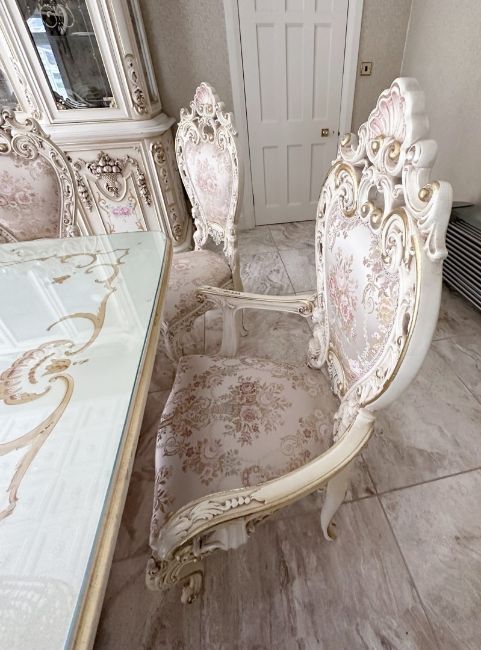 1 x EXQUISITE Handcrafted In Italy Venetian Style Dining Room Table And 12 Silk Backed Chairs. - Ref: SKBR018 - CL853 - NO VAT ON THE HAMMER - Location: Barrowford BB9