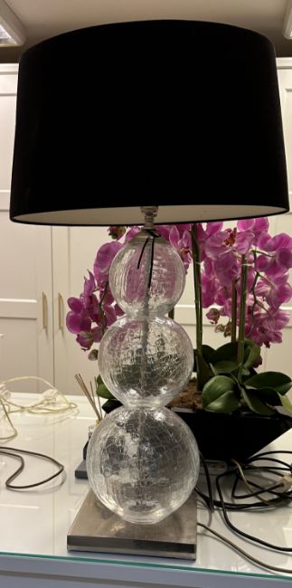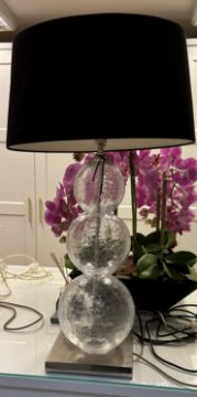 This beautiful Porto Romano crystal glass lamp comes with a black suedette shade, It sits on a heavy stainleess steel base and can either be used as a floor or table lamp. It was purchased from an upmarket Interior Design boutique.