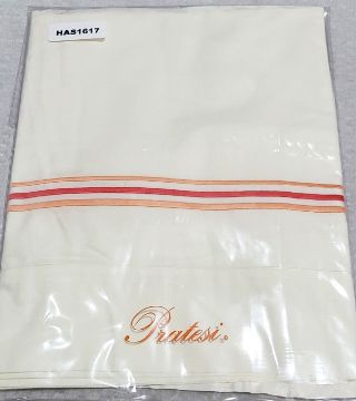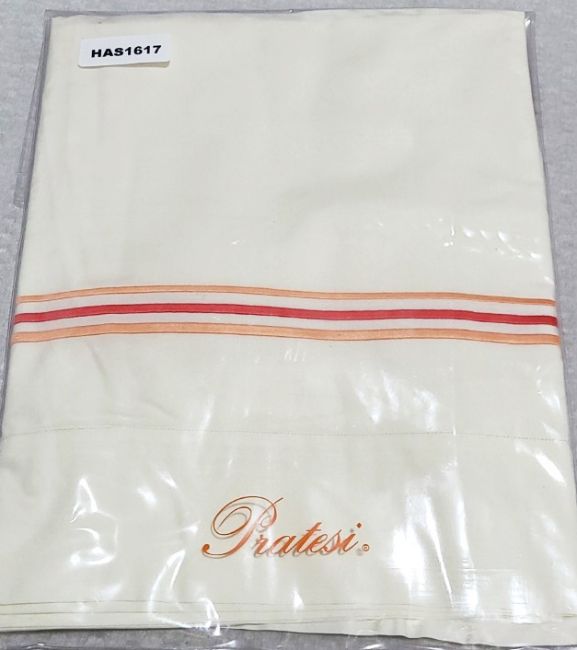 1 x PRATESI Tre Riche 3 Lines Peach And Salmon Embroidered Angel Skin Sham 50x75cm - Original Price £225.00 - Unused Boxed Stock - Ref: HAS1617/WH2/BOXD - 11/22 - CL987 - Location: Altrincham WA14