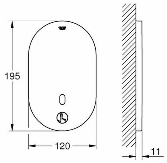 Eurosmart Cosmopolitan E Bluetooth infrared electronics for shower thermostat, wall installation with infrared sensor and Bluetooth® module for bidirectional communication with numerous readout, setting and service functions with transformer 100-240 V AC, 50-60 Hz, 6.75 V DC Final assembly set for flush-mounted installation box 36 416 000 GROHE StarLight® surface with Bluetooth® 4.0* for wireless data communication for Apple** and Android devices