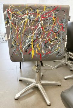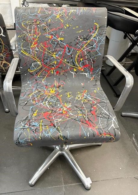 1 x REM Leather Stylist Chair Featuring Especially Commissioned Abstract Paintwork By A Renowned British Artist - A Unique Handpainted Piece, From An Award-winning Chelsea Hair Salon - Ref: 003 - CL828 - Location: Altrincham WA14