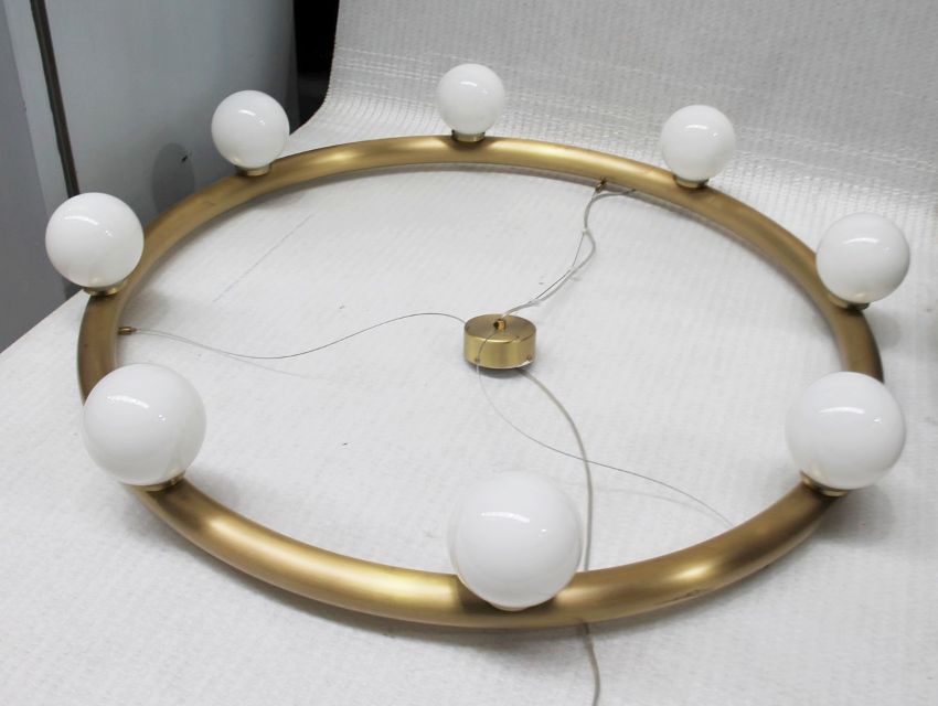 1 x CTO 'Orb' Circular 8-Light Statement Chandelier In Brass With Opal Shades - Original Price £3,540 - Ref: HAS1564/WH2-BA R1 - CL789 - CL987 - Location: Altrincham WA14