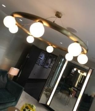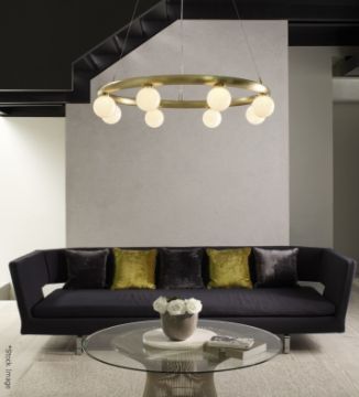A hugely popular piece from CTO Lighting, the Orb Pendant Light combines contemporary design with a stunning artisan crafted finish. Comprising a luxurious satin brass ring setting, the Orb Pendant Light suspends eight spherical opal glass shades.