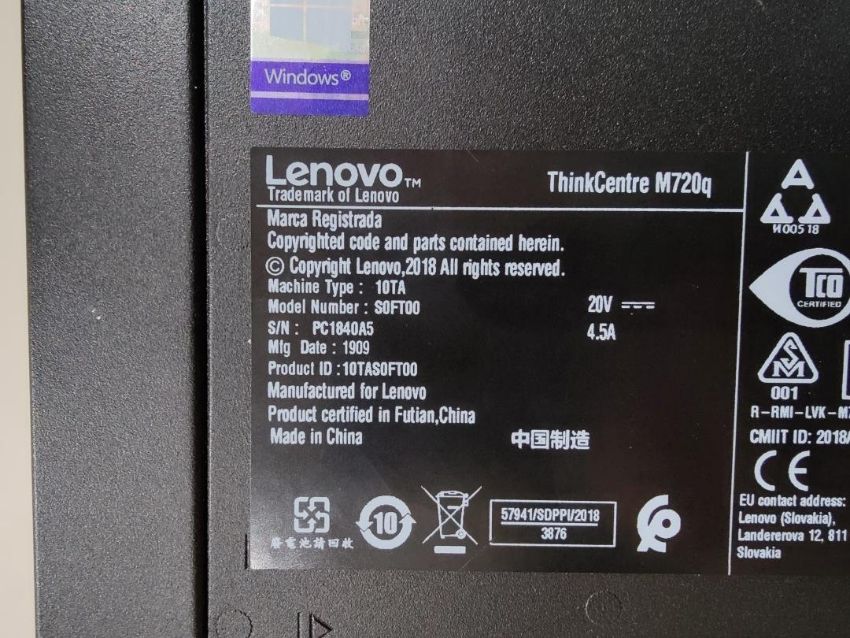 1 x Lenovo ThinkCentre M720Q Mini PC - Features Include an Intel i5-8400t 1.7Ghz / 3.3ghz 8th Gen Six Core Processor With 9mb Cache, 8gb DDR4 Ram, 256gb NVMe Hard Drive, 1TB SATA Drive, Windows 11 and Intel 630 Graphics - CL010 - Ref: 222 - NO VAT ON HAMMER - Location: Altrincham WA14