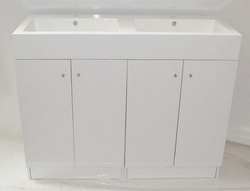1 x Gloss White 1200mm 4-Door Double Basin Freestanding Bathroom Cabinet - New & Boxed Stock - CL307 - Location: Altrincham WA14 - Total RRP £807.00