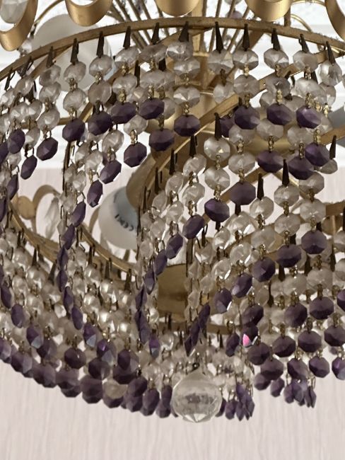This beautiful genuine crystal and purple gemstone pendant light with French gold frame, was bought from an exclusive lighting store 'FANTASTIC LIGHTING'  in Kent.