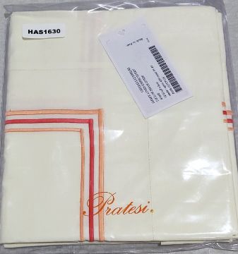 Set Of 2 x PRATESI Tre Riche 3 Lines Peach And Salmon Embroidered Angel Skin Sham 50x75cm - Original Price £225.00 - Unused Boxed Stock - Ref: HAS1630/WH2/BOXD - 11/22 - CL987 - Location: Altrincham WA14