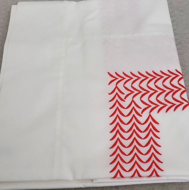Set Of 2 PRATESI 'Bisanzio' Luxurious Italian Made Embroidered Leafs In Red On Angel Skin Shams 65x65cm - Original Price £1,120.00 - Unused Boxed Stock - Ref: HAS1661/WH2/BOXD - 11/22 - CL987 - Location: Altrincham WA14