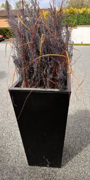 This large black metal outdoor planter comes with coloured foliage but can be replanted.