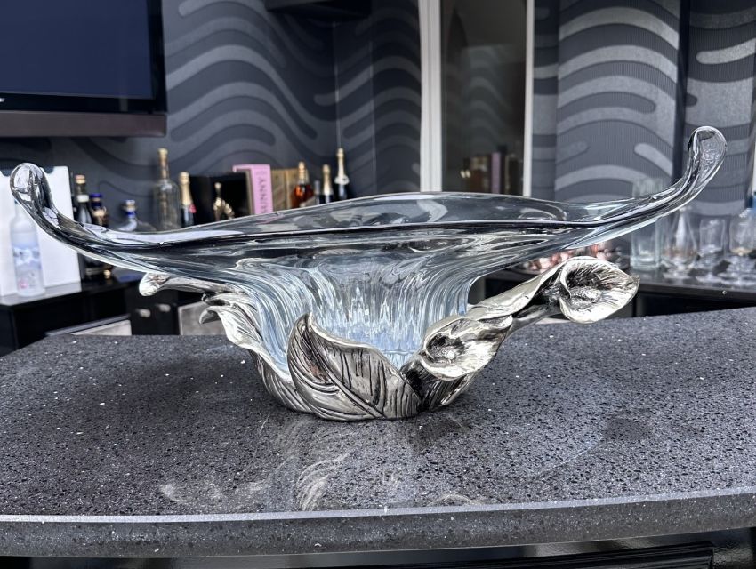 1 x Elegant Crystal Glass Bowl With Metal Flower Design Base - Ref: SKBR011 - CL853 - NO VAT ON THE HAMMER - Location: Barrowford BB9