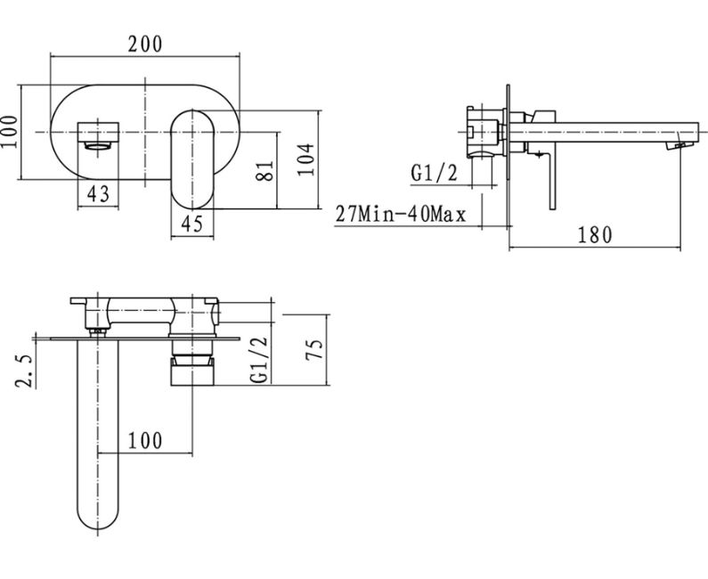 1 x CASSELLIE' Filo' Wall Mounted Basin Mixer Tap In Chrome - Ref: FIL001 - New & Boxed Stock - RRP £179.99 - CL406 - Location: Altrincham WA14