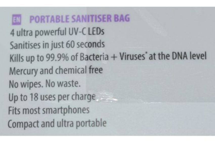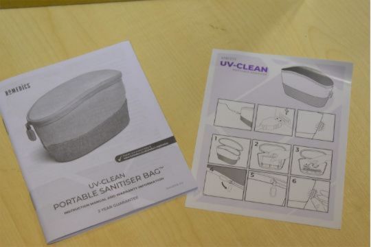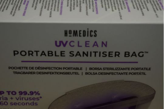 • HoMedics® UV-CLEAN Portable Sanitizer Bag kills up to 99.9% of bacteria and viruses with no chemicals or mercury