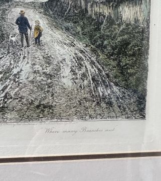 1 x FRED SLOCOMBE Etching Framed Print "Where Many Branches Meet", 1888 - Ref: SKBR044 - CL853 - NO VAT ON THE HAMMER - Location: Barrowford BB9