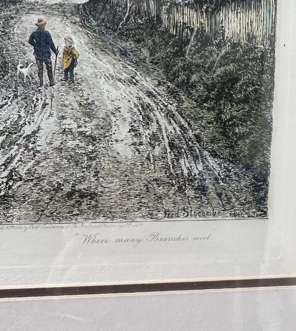 This lovely FRED SLOCOMBE Etching Framed Print "Where Many Branches Meet", 1888, was bought from Sandringham Fine Art shop in Harrogate and has a lovely mahogany wood frame and classic mount.
