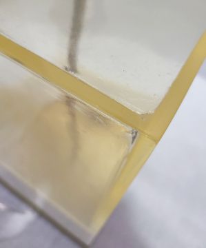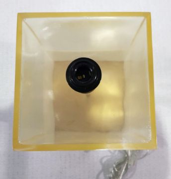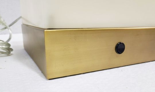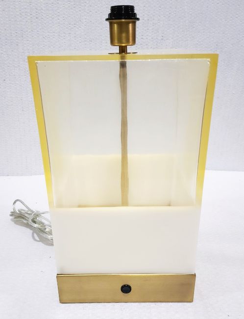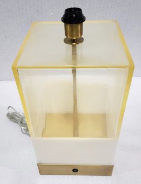 1 x CHELSOM Rectangular Gold Tinted Glass Box Table Lamp With Stone Lower Third And Brass Base - Unused Boxed Stock - Ref: BST371/WH2/E2 - CL011 - Location: Altrincham WA14