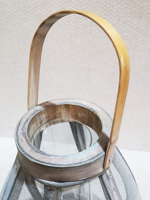 1 x BLUESUNTREE Aged Wicker Handle and Wire Mesh Lantern With Glass Candle Holder 24x38cm - Unused Boxed Stock - Ref: BST352/WH2/C10 - CL508 - Location: AltrinchamWA14