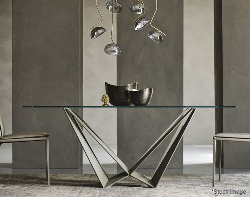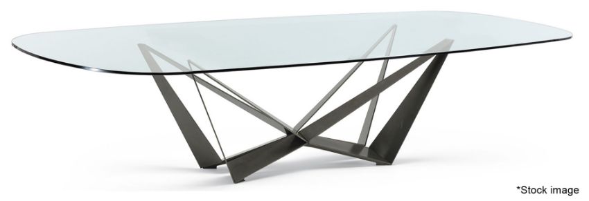 1 x CATTELAN ITALIA 'Skorpio' 200x120 Shaped Designer Dining Table, With a 15mm Extra Clear Glass Top and Base Parts in a Titanium Tone *Incomplete* Original Price £3,589 - Ref: 4583539/HJL145+147+148/07-23 - CL087 - Location: Altrincham WA14