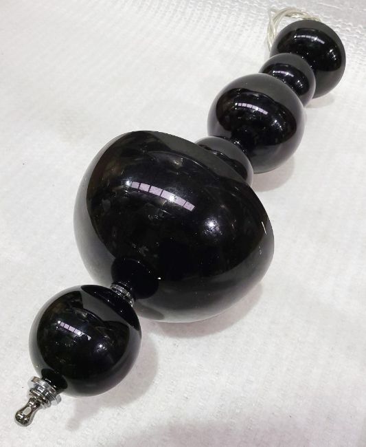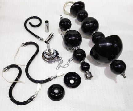 1 x CHELSOM Spectacular Gloss Black 12 Light Hanging Glass Balls Chandelier With Curved Arms And Glass Trimmings That Curl Upwards - Unused Boxed Stock - Ref: BST356/WH2/E2 - CL011 - Location: Altrincham WA14