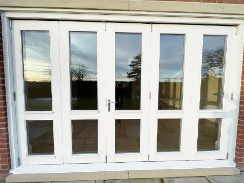 1 x Timber Framed Bi-Fold Double-glazed 5-Panel Patio Doors - Ref: PAN158 / 2GRDN - CL896 - NO VAT ON THE HAMMER - Location: Wilmslow, Cheshire SK9