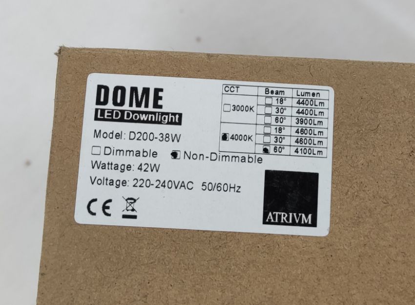 1 x ATRIUM Dome Led Downlight D200-38W Non-Dimmable 4000K 60Deg 4100Lm 42W 220-240V - Diameter 21.5cm - White - Ref: ATR135/ATRPB - CL891 - Location: Altrincham WA14