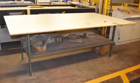 1 x Large Industrial Metal Work Table With Wooden Top and Undershelf - Dimensions: H94 x W250 x D145cms - JBK118 - Location: Keighley, Bradford, BD22