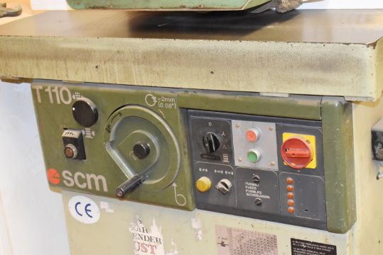 1 x SCM T110 Spindle Moulder With Maggi Steff 2034 Power Feed Arm - Type: T110A - S/No: 087645 - Ref: JBK182 - Dimensions: H165 x W120 x D66 cms - Location: Keighley, Bradford, BD22