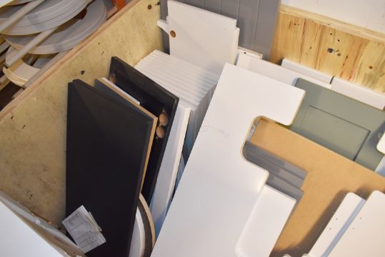 1 x Assorted Collection of Cabinet Parts, Doors and Shelves - Includes Wooden Pallet Crate - JBK135 - Location: Keighley, Bradford, BD22