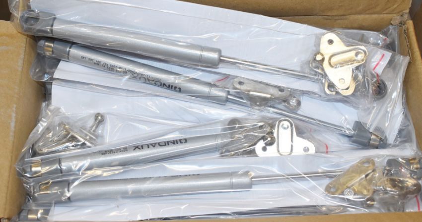 100 x Indaux Gas Lift Furniture Cabinet Support Struts For Kitchens, Bedroom Futniture, TV Units and More - New Boxed Stock - Approx RRP £800 - Includes 5 x Boxes of 20 x Supports - JBK189 OW26/088 - Location: Keighley, Bradford, BD22