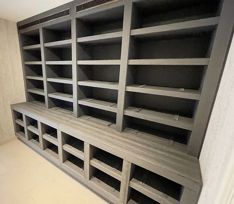 1 x Bespoke Fitted 3-Metre Wide Solid Grained Wood Open Cabinet - Ref: ASH3--/GYM - CL934 - NO VAT ON THE HAMMER - Location: Knutsford WA16
