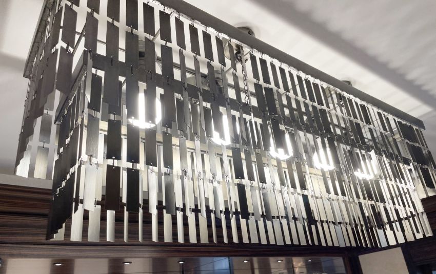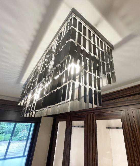 1 x Opulent 2-Tier 5-Light Statement Chandelier Fitting Adorned with Chained Brushed Metal Elements - Ref: ASH3--/SFR - CL934 - NO VAT ON THE HAMMER - Location: Knutsford WA16