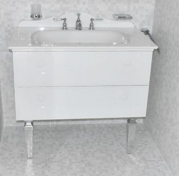 You are bidding for a premium 2-Drawer Vanity Basin Unit with Tapered Chrome Legs, and Traditional Style Taps and Upstand