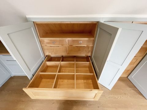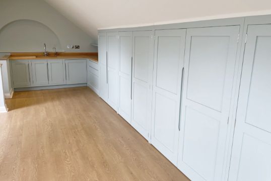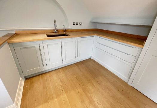 Bespoke Fitted Solid Oak Shaker-style Loft Kitchen / Home Office with Quooker Hot Water Tap and Undercounter Fridge - Ref: ASH3--/GYM - CL934 - NO VAT ON THE HAMMER - Location: Knutsford WA16