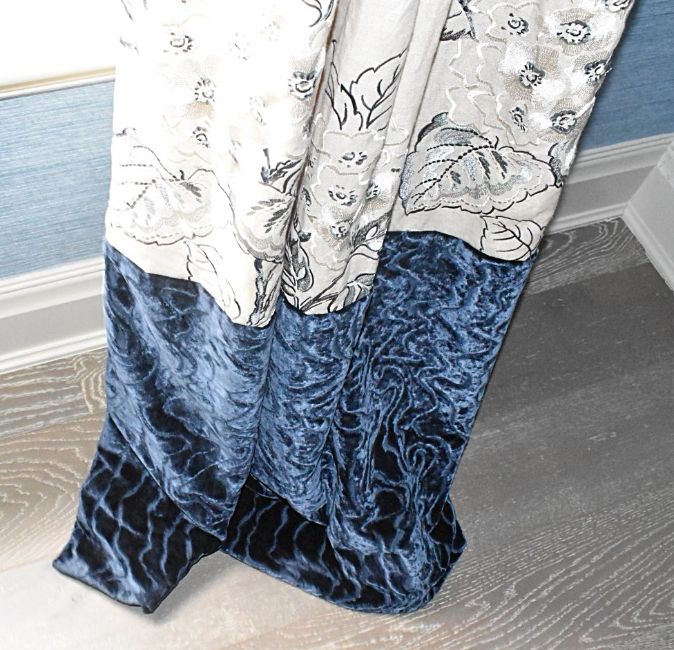 2 x Pairs of Bespoke Lined Curtains with Blue Velvet Trims + 1 x Blind - Ref: ASH347/BBR - CL934 - NO VAT ON THE HAMMER - Location: Knutsford WA16
