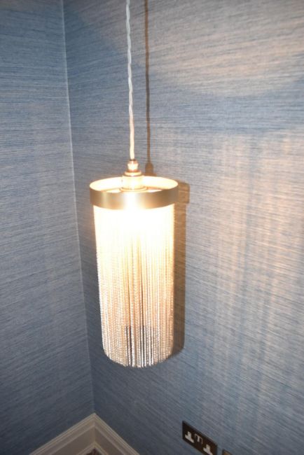 A Pair of Contemporary Pendant 'Bedside' Lights with Chain Shades - Ref: ASH346/BBR - CL934 - NO VAT ON THE HAMMER - Location: Knutsford WA16