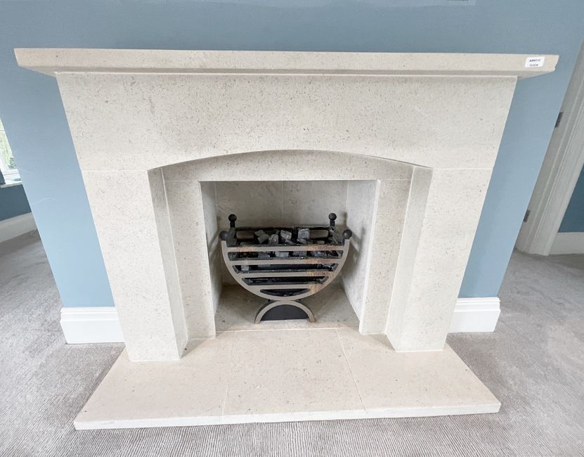 1 x Stone Fireplace with Hearth & Gas Fire - Ref: ASH312/BAL - CL934 - NO VAT ON THE HAMMER - Location: Knutsford WA16