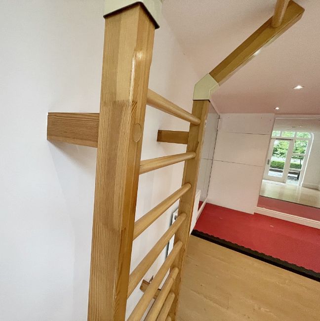 1 x Set of Wooden Wall Mounted Gym Wall Bars Sports Rack - Ref: ASH3--/GYM - CL934 - NO VAT ON THE HAMMER - Location: Knutsford WA16
