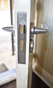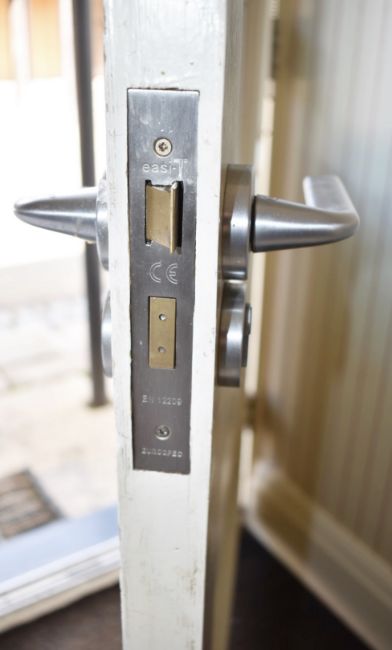 1 x Solid Wood Lockable Painted Glazed External Door - Includes Hinges and Handles - Ref: ASH104/UTL - CL934 - NO VAT ON THE HAMMER - Location: Knutsford WA16