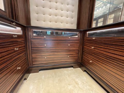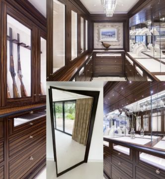 Produced to the highest standards by Halstock England, this beguiling secure space features an array of softly lined drawers and illuminated display cabinets, all fastidiously installed by the award-winning Precision Installations, and protected by a heavy duty inner security door which itself is behild it's outer mirrored panel frontage and opened using an Integra Fingerprint Scanner.