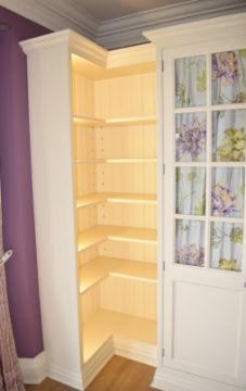 1 x Bespoke Solid Wood Fitted Illuminated Wardrobe Unit in Cream with Glazed, Curtained Doors - Ref: ASH332/PBR - CL934 - NO VAT ON THE HAMMER - Location: Knutsford WA16